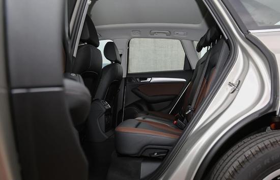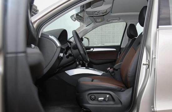 奥迪Q5的内饰风格已经非常熟悉了,精致而富有品味几乎成了它的代名词,Q5自然也不例外。哑光质感的桃木条显的高档而不庸俗,感觉坐进Q5不像坐进了SUV,而是坐在一辆豪华轿车里面。Q5的中控台则采用驾驶者导向设计,位于中控台最上部的MMI系统大型液晶显示屏,奥迪迷就最熟识不过了。三幅式 的方向盘握感极佳,仪表盘的中央行车信息显示屏为彩色设计,看起来更加多样化