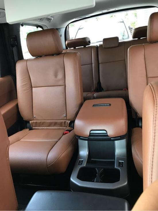 全新丰田红杉5700白金版的内部空间采用了符合人体工学的设计理念,除了更加宽大舒适的空间外,更重要的就是居高临下的感觉。第二排座椅可以说是很豪华,它拥有三温区自动空调、电动调节座椅带加热和降温功能;红杉的第三排空间也相当的宽裕,不亚于任何大型MPV。