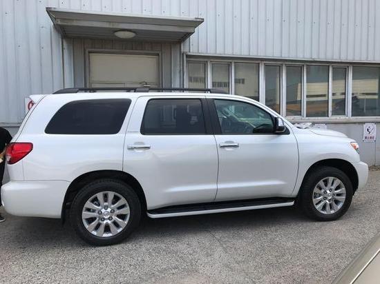 17款丰田红杉5700白金版保留了原来的车身侧面,但是后视镜和车门把手改为亮金属颜色,增加了几分时尚质感。