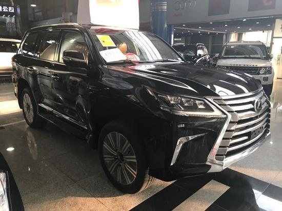 17款雷克萨斯LX570 中东版 Sport Plus金属漆、凌志标照地镭射灯、21轮、遥控启动、外置脱钩、车身防擦条、流水式转向灯、138升双油箱、 SPORTPLUS标(运动加强版、底盘及发动机运动模式调校) 换挡拨片、冰箱、天窗、智能卡、电眼、环影、后娱、底盘升降、前座椅通风加热(真皮)、导航、倒影、桃木多功能方向盘、桃木内饰、铝制行李架、航空照明脚踏、LED 氙灯 大灯清洗、迎宾灯、四区空调、三排电动、电尾门、拖车钩、ACC自适应巡航、后排遮阳帘、风挡玻璃除冰功能、雷达测距