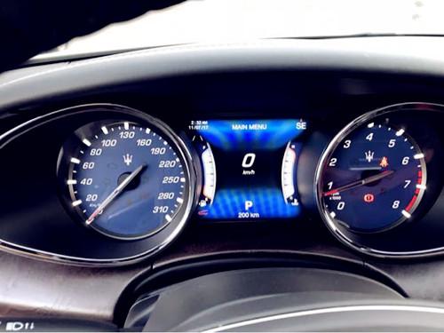仪表盘是双镀铬炮筒式的,经典的玛莎拉蒂主打蓝色氛围,如图所示,在行车电脑里可以显示大部分的车辆信息。