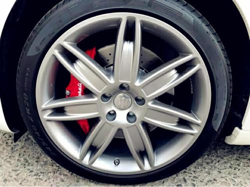 17款玛莎拉蒂总裁四驱是20寸轮毂的,卡钳为红色的,显得格外的运动,通风盘式碟刹在制动性发面表现极佳。