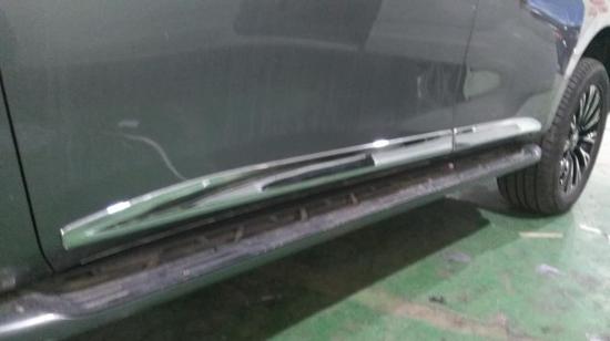2017款尼桑途乐XE4000侧面原车踏板没有改动,但加装了防撞条。