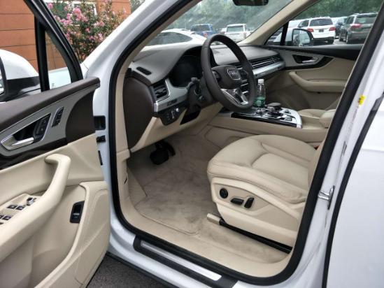 内饰方面:内饰依旧延续了家族式的设计风格,彻底贯彻了奥迪科技生活的理念,全数字化液晶仪表盘,多功能方向盘、全新电子挡把、带有大尺寸手写板的MMI系统一应俱全。奥迪Q7的内部空间采用环抱式设计理念,即运用一条 优雅的弧线设计将仪表盘收纳其中,使其犹如一道平缓的波浪。全新的档杆设计搭配杯架隔层,为您提供便利的同时,让换挡过程更加平稳顺畅。此外,精致的真皮仪表盘和方向盘等设计,更彰显高雅品味。