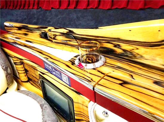 就连木纹都精致的出奇,美杜莎系列产品的大面积采用泰国进口虎斑檀木打造,黑色的木纹就好像老虎斑纹,色彩绚丽,尽显王者风范。不规则的纹理交相辉映,又好像浑然天成的水墨画,纹路曲折变化多端,极具律动之美。经过工匠们复杂的书切工艺,以手工切成薄片,在进行包裹、染色并喷涂钢琴漆,最后以手工打磨抛光的方式,恰到好处的镶嵌在车身内部,使其与车身浑然一体。