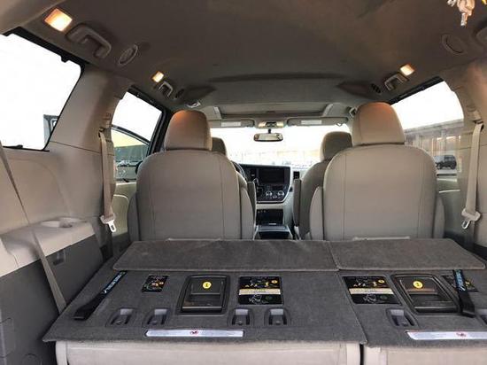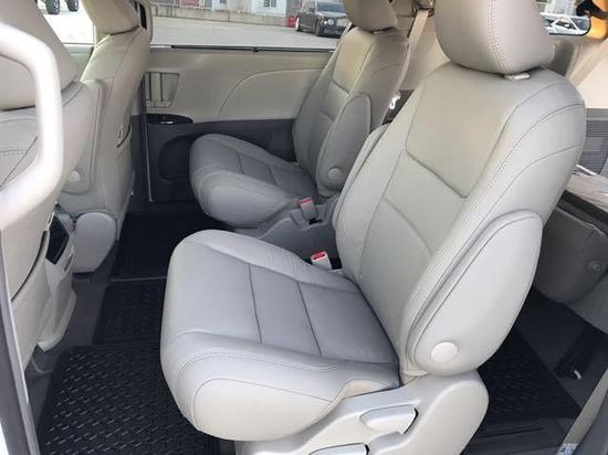 17款丰田塞纳 XLE 3.5四驱7座加版现车:18轮,7座,7寸导航屏,定速巡航,前雾灯,后电眼,倒影,第三排手动座椅,音响6声道mp3,可滑动天窗,原厂真皮座椅,前排座椅加热,智能卡,一键启动,主驾驶8向座椅调节,副驾驶4向座椅调节,多功能方向盘,镀珞门把手,行李架,电动门,电尾门,遮阳帘,隐私玻璃,桃木内饰,并道,三区空调,后视镜加热。天津港售价:55万元。