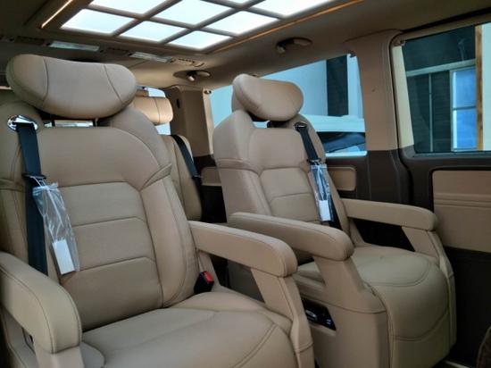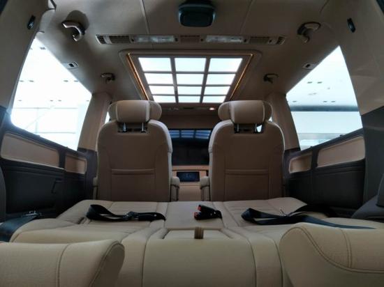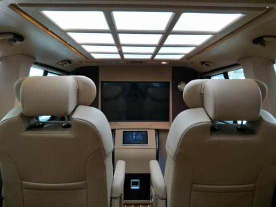 整车的内饰以寓意富贵呈祥的米色为主体元素,夹带着凸显古典神秘的深灰螺布纹,车顶一体式照明顶灯搭配迈巴赫,再辅以两侧壁灯的装饰,将车内的氛围烘托到极致华贵。
