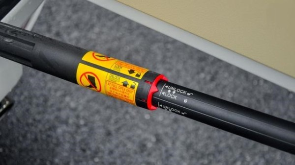 玄机就藏在这根气压杆里,看见那张黄色贴纸了吗。