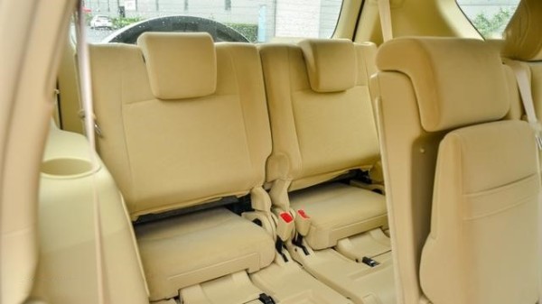 第三排座椅的打开方式比较复杂,要分别的把两个靠背拉起来,再拉出两个坐垫,这过程能消耗大几十卡路里,工程师为为塞下这第三排座椅也是操碎了心。
