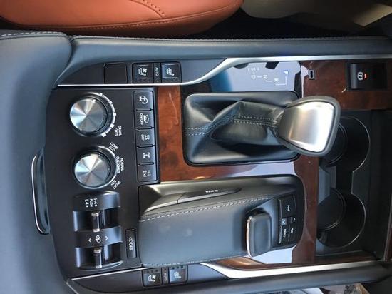 雷克萨斯LX570在内饰方面:17款雷克萨斯LX570加版八座中控台及仪表台上方的材质为软性真皮包裹,材质优越,按键及按钮手感好。仪表盘和音响系统控制面板遵循LEXUS雷克萨斯未来设计风格,呈现简洁与易操作的特点。四幅多功能方向盘样式显得很稳重,排档杆面板及行驶模式控制面板都呈现厚实的金属感。