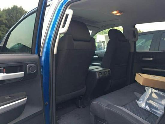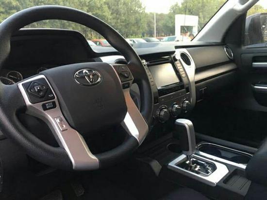 17款丰田坦途SR5TRD车内感觉哪哪都挺大的。除了那个熟悉的方向盘,其余的地方例如扶手箱、挡把和各种旋钮都是大号的。整个内饰的感觉相比于我们熟悉的一般车辆,有一种从6平米 的出租房一下子进入大礼堂的感觉。三辐方向盘延续了家族设计理念。金属、木材、皮革等多材料营造了相当豪华的视觉感受。