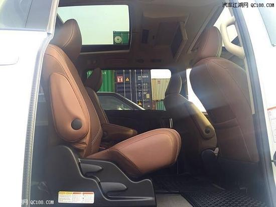 17款丰田塞纳商务车是一款颇具传统风格的多功能商务用车,外观前卫时尚,配之以低重心的车身,营造了强烈的视觉冲击力。同时硬朗的腰线又让这部商务车充满了力量感。 新车外形、动力、舒适、控制感等各方面技术都是世界一流的。新款丰田塞纳采用一体式的LED尾灯组合,流畅的线条将灵动的一面延伸至尾部。举手投足之间更加令仰慕者着迷,吸引着过客,外观狂放、大气,更有卓越的操控性能。[全系降价咨询电话在尾部]