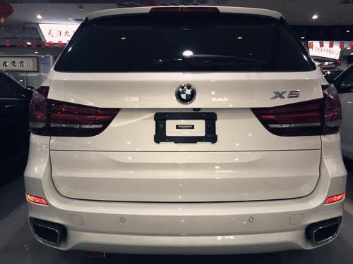 17款加拿大版宝马X5尾部看起来运动气息十足,方形的排气尾喉是典型的M型套件之一,加拿大版车型带有排气声浪。