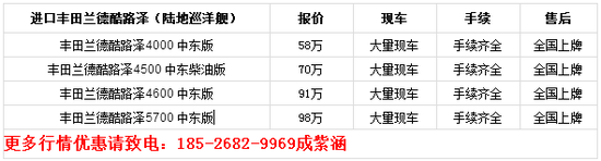 原装进口丰田酷路泽5700大批量现车到库,诚邀全国各地二级经销商到店商谈合作业务。进口丰田酷路泽5700海外自营接单,船运,报关,仓储,批发零售。海关直属机构,诚信五星企业,天津港口丰田品牌销售中心,2017款原装进口丰田酷路泽5700七座越野首选,资深越野车迷的最爱车型。了解更多请关注:18526829969(微信)。具体详情欢迎来电咨询。