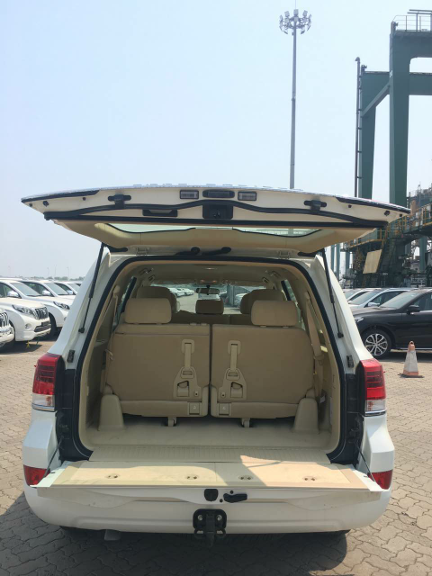 配置:17款酷路泽4000 无天窗高配七座手续: 底挂备胎,后车门向上开启,一键式启动+无钥匙进入,丝绒手动座椅,全时四驱轮胎尺寸:17铝合金轮,电眼,2气囊,低速巡航系统转弯辅助系统,胎压报警,防抱死制动(ABS)+电子制动力分配(EDB)+制动助力器 ( ba ) vsc trc,中央差速器,同色门手把,淡绿色挡风玻瑞,后泥挡,新款镀铬中网 前雾灯高位刹车灯/手动折叠后视镜(连转向灯)氙气大灯,侧面银色脚踏,置物箱/电子钟,新款桃木装饰真皮桃木多功能方向盘,遮阳板化妆镜(连灯), aux 电动门窗们门锁/前后雨刷/后窗除雾器,前区自动空调,巡航定速,冰箱,后灯镀铬装饰/后牌照架镀铬,防盗装置,拖车钩,17轮