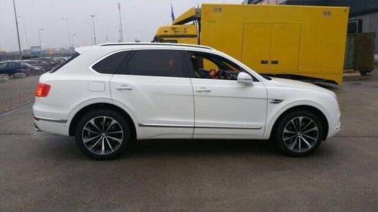 17款宾利添越车身侧面,前翼子板上的通风口以及贯穿前后的腰线、隆起的后轮拱和飞驰线等经典的宾利家族设计风格一应俱全,让人一眼就能看出这是一台宾利品牌的车型。