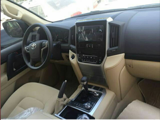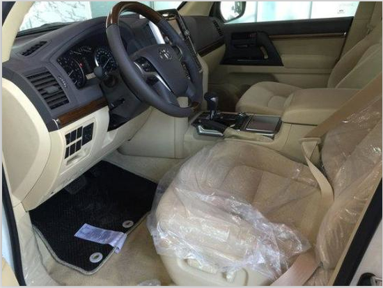2017款丰田酷路泽4000中东版配有多功能方向盘,调节音量和控制显示屏的功能。17款丰田酷路泽4000中控台换成了具有磨沙手感的金属板件,增强了内饰的质感。在仪表盘方面也并无变化,双炮筒式的结构加上红线元素酷劲十足,信息量也十分清晰。整体内饰设计,更是充分满足了消费者对高端SUV内部空间的更高要求。