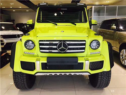 17款奔驰G5004*4在越野性能上,2017款奔驰G500 4x4²的离地间隙达到了450mm,涉水深度为1000mm,接近角和离去角分别为52°和54°。越野装备方面,进口2017款奔驰G500 4*4依然配备了G级车型引以为傲的前中后三差速锁系统(这和普通G500相同),并采用了与普通版G级车型不同的门式车桥。此外,新车装配了一套尺寸巨大的越野轮胎,轮胎型号为325 /55 R22。