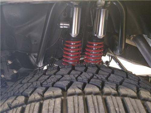 配置方面:离地距离 450mm、涉水能力 1米、轮胎间距 1.744mm、3种驱动模式、22寸轮毂、每个轮胎带有两个减震器及两个悬架弹簧,天窗、22轮、红卡钳、双减震、氙灯LED日行灯、多轮廓电动包裹座椅、翻毛皮内饰(翻毛皮双色座椅、翻毛皮方向盘、翻毛皮门板、翻毛皮内顶)、前排座椅通风加热、二排座椅加热、哈曼音响(14个扬声器)、三把差速锁、中控碳纤维装饰、底盘舒适度调节、脚踏、前电眼、倒影、导航、多功能方向盘(蓝牙、定速巡航、换挡拨片)、双区空调!