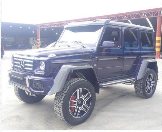 配置: 17款 奔驰 G500 4x42 4.0T (汽油)V8发动机,7速,门式车桥,AMG包围,加高加宽的车身,氙灯,日行灯,黑色翻毛皮内顶,碳纤维内饰,前排座椅加热带通风,翻毛皮和真皮双拼座椅和方向盘,换挡拨片,座椅记忆,碳纤维轮眉,车顶碳纤维扰流板带LED上雾灯,黑色车顶,,不锈钢双车底保护,可调悬挂,22轮,前中后三把差速锁,哈曼音响,红卡钳,打孔刹车盘,小天窗, 倒影,踏板