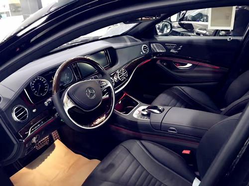 接下来是奔驰S550e的内饰,如图所示,奔驰S级内饰设计几乎是完美,无论是质感还是整车用料,都是一流的,座椅是头层牛皮工艺,装饰条为实木,调节座椅以及后视镜的按键在双门上,这是奔驰的家族式设计,通过手写控制输入系统可以轻松的控制大屏里的功能,氛围灯可以调节多种颜色以及亮度,奔驰S550e的内饰氛围灯是最漂亮的,科技感十足,让您感受到梅赛德斯奔驰最科技豪华的体验。