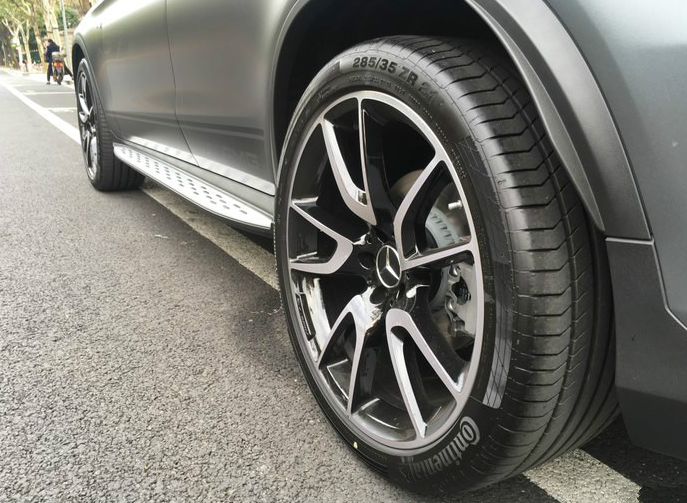 这台GLC43的车头进气格栅用的是C级满天星设计,车轮毂是21英寸轮圈,配的是马牌CSC5 SSR轮胎,刹车系统经过特殊改装。