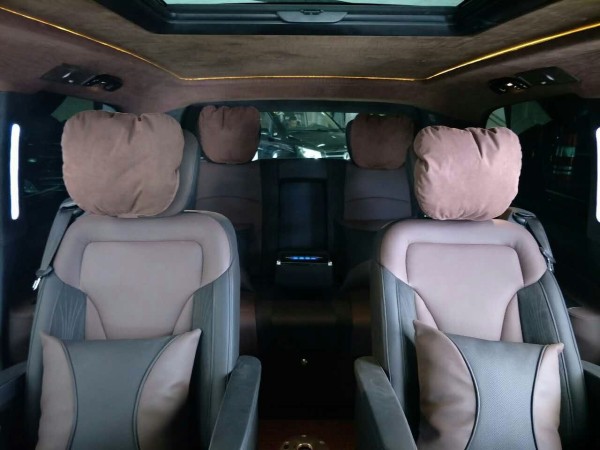 现代商务人士,免不了要在车上办公。全新奔驰维特斯METRIS共6座,乘客舱2+2布局。2个首长席带脚托多功能按摩座椅,支持前后移动和270°旋转。无轨道耐磨地板上有可拆卸小方桌,高承重性,方便后排乘客洽谈商务会议。同时驾驶舱后背也有隐藏式桌板,随时展开方便放置您的手机电脑等。