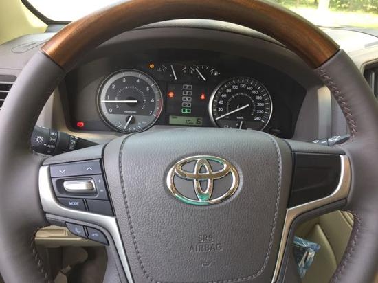 2017款丰田酷路泽4600 (EXR)中东版(气泵版)配置:七座版 珍白色,7座,蠕行系统,8气囊,主驾驶电动座椅,中央差速锁,天窗,丝绒座椅,桃木内饰,桃木多功能方向盘,冰箱,智能卡,一键式启动,遥控启动,巡航,触摸大屏,迎宾灯,倒影,自动空调,气泵,蓝牙,坡道辅助,氙灯LED,285-18轮毂,脚踏,前二后四电眼,拖钩,银色行李架,雾灯,双油底挂,灰色亮条中网,胎压监测,脚垫,冲沙旗。