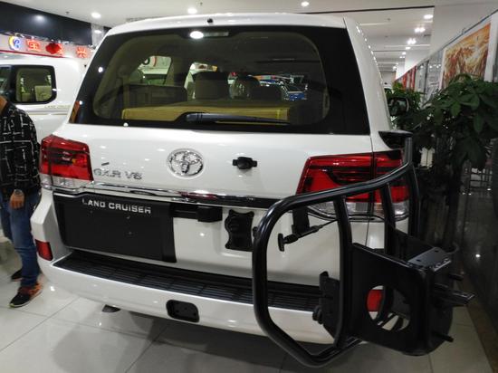 2018款酷路泽4000GXR 7座 白/米 配置表:6速,八气囊 ,外挂备胎, 天窗, 单差 ,蠕行系统 ,单后挂备胎, 氙灯, LED灯, 主驾驶电动座椅 ,桃木方向盘 ,桃木内饰, 多功能方向盘, 巡航定速 ,智能卡 ,一键启动 ,拖钩, 冰箱 ,彩条 ,17铝合金轮毂。