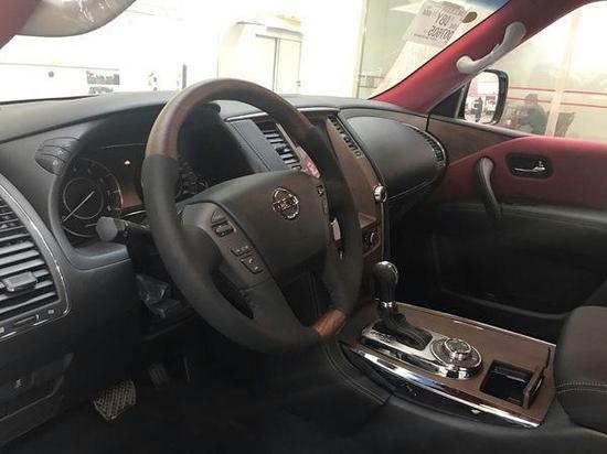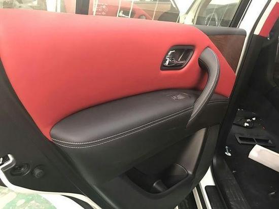 日产途乐Y62中东版内饰兼具了舒适性和功能性。仍然为三排座车型,内饰材质也更加的考究,使用了原车丝绒座椅,铝以及木纹样条作为点缀。低配途乐XE版本中控部分的是一个储物盒,标准日系车的风格,