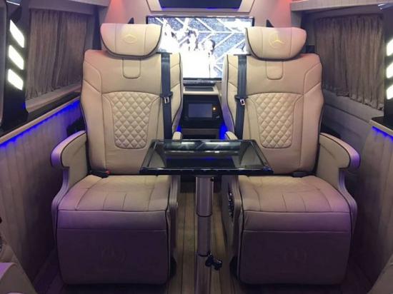 17款奔驰威霆后舱总裁电动座椅(2个),采用纳帕真皮制作,根据人体工程学设计,可一键式展开3级记忆功能(通风,加热,气动按摩),并带有腿托功能。座椅中央扶手台处设置有电动伸缩航空铝制小桌板、商务办公很方便。扶手台顶端设置有大屏液晶触控系统,可操控全车电器。