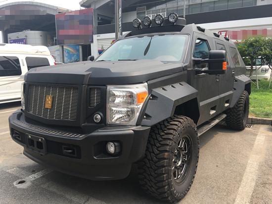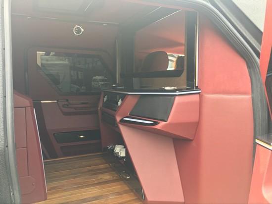 纵观前脸部,有点福特F450的身影,据悉这款售价350万的越野车是在福特F450皮卡的基础上改装而来的,虽然这是改装而来的车辆,但是这款车的动力还是十分强劲的。