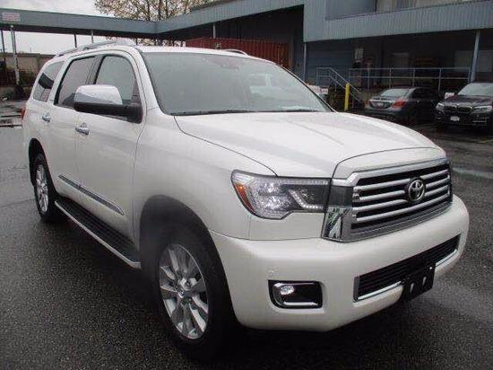 17款丰田红杉5700是一款备受美国车迷青睐的超大型SUV,健硕的车身,粗犷的线条,宽敞的空间,强劲的动力,无一不彰显丰田家族SUV的魄力和风范。丰田17款红杉5700是一款超大型SUV,车身长为5.2米,宽2米,高1.9米,轴距3.1米,健硕的车身,粗犷的线条,宽敞的空间,强劲的动力,无一不彰显丰田家族SUV的魄力和风范。丰田红杉顶配前进气栅为镀铬装饰,上面印有红杉的Logo,与发动机盖突出的部分相连接,像是一张呼之欲出的脸,加上较高的车身,给人一种威慑感。进口2017款丰田红杉5700顶配白金版保留了原来的车身侧面,但是后视镜和车门把手改为亮金属颜色,增加了几分时尚质感