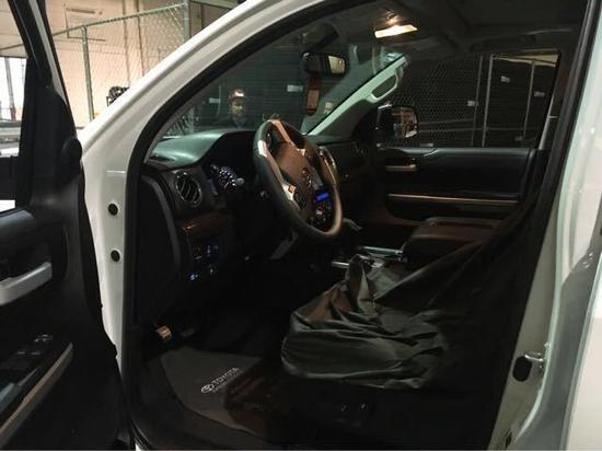 2017款丰田坦途1794纪念加版前脸明显外张的挡泥板以及前突的坚固格栅尽现强悍风格,视觉上极富冲击力。来自车身的另一处主要变化就是经过全新设计的拖车钩,在易用性得到提升的同时,还在一定程度上提升了安全性。两只大灯炯炯有神的新款进口丰田坦途就这样用神态俘虏着车主,这澎湃的动力,简直所向披靡了。坦途并不像其他皮卡那样的死板呆滞,豪华气息夹杂其中让坦途倍显气质。用心为你平稳人生路,优质新生活从现在开始。
