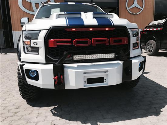 2017款福特F150车头十分威猛高大,摆出了一幅彪悍无比的面孔,给其他车辆都带着小小的恐惧,还有更多的来自速度的刺激而不自觉的避让,让越野车迷们极尽疯狂。