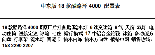 丰田霸道4000最直观的是新增流水式转向等让前脸看上去更加威武霸气十足。中东版2018款丰田酷路泽4000还是以越野机能强、性价比高、皮实耐用这三大特征,矗立于入口越野车的鳌头,搭配分时四驱,连结了非承载式车身、前软后硬的吊挂布局,把越野酿成崇奉。