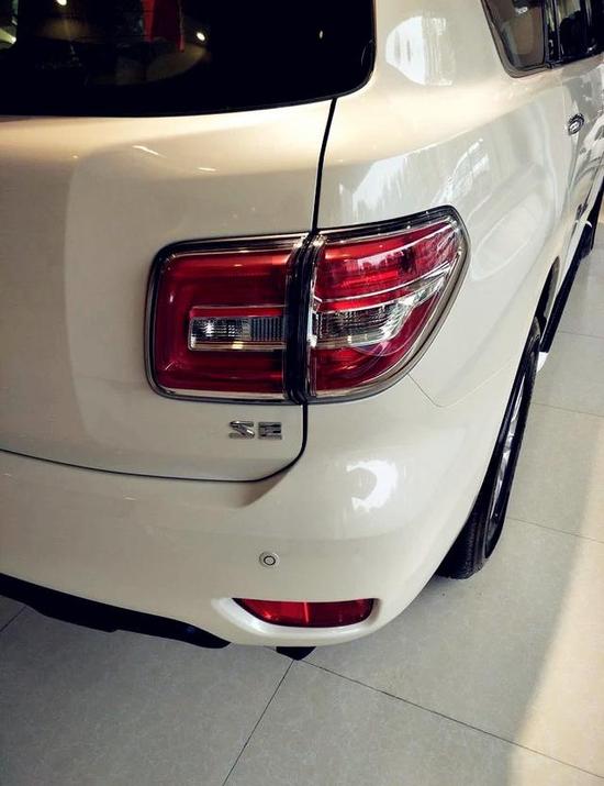 细节方面:18款日产途乐Y62中东版外观延续了现款的风格,但很多细节处做出了调整。该车增加了许多银色镀铬装饰条,这也许是为了更大程度的满足国内消费者喜好。另外,该车加入了LED日间行车灯,前大灯的内部结构也发生了改变,而尾灯圆型的刹车灯被红色灯带取代,并增加了镀铬装饰。