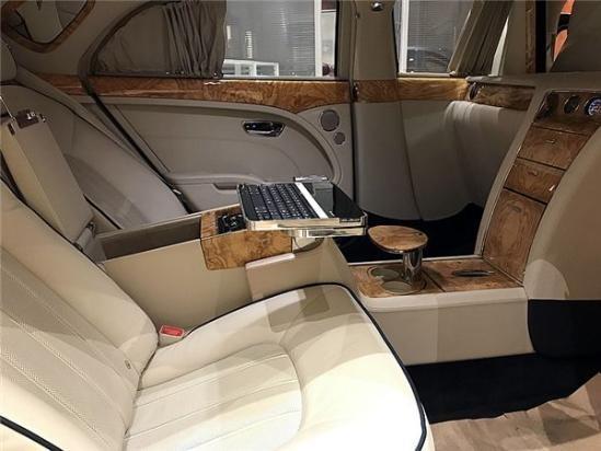 2017款宾利慕尚加长限量版带有凹凸感的菱形装饰蒙面大大提升了座椅的奢华感,简直像是爱德华七世的王座一样精美,靠背上的宾利徽章,是熟练的工匠亲手缝制上去的,两个独立的“航空级”座椅非常舒适。加长版中控台纵贯座舱,手工制作的精美巧妙容纳诸多存储功能,中央通道新增的两块隐藏小桌板非常实用,当需要工作时,可以从其中伸展出使用。