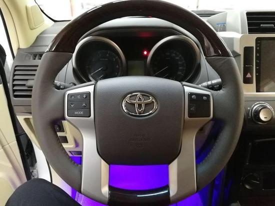 多功能真皮方向盘,双炮筒的自发光仪表盘2017款丰田霸道2700饱满的四幅方向盘手感不错,用起来绝对舒适,左右两侧装饰部分集成了音响系统和车载电话控制。