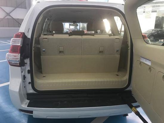 空间设计丰田霸道2700在后备箱空间方面,一般情况下只要放倒第三排座椅就会有不错的载物空间,如果必要,放倒第二排座椅后就可以拥有装进两、三辆自行车的奢侈空间了。车内空间绝对够大,4820*1885*1890mm的车身尺寸,培养了宽敞的车内空间,正副驾驶座椅可多向电动调理,第二排座椅先后挪动间隔大,靠背角度可以调剂,第三排座椅5:5分派,可以从后备箱和第二排座椅处电动收放,充实的斟酌了空间利用的最大化。尾部备胎后置,越野车范儿更浓,结合宽大的后窗及层次分明的尾灯,令新款普拉多更具有越野车的气质和魅力。