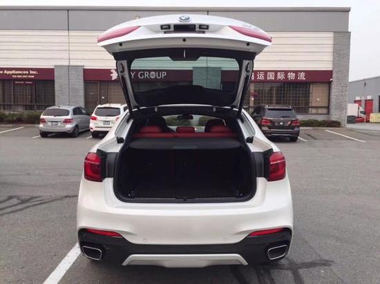 空间方面:18款进口宝马X6车内纵向空间一如继往的阔绰,后车门可大角度开启方便两个后座乘客上下车。对于轿跑车不同寻常的是后排头上空间达到944 mm即37.2“,使高个子乘客也可尽享舒适。从后面看去,BMW X6的后窗造型给人一种努力奋进的开放感,同时由此也可体会到空间的宽裕。虽然X6采用了四门轿跑车的设计风格,但是通过放倒后排座椅,可以实现1450升的行李箱空间。