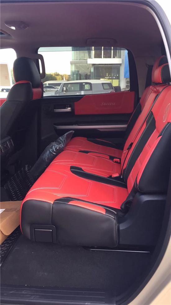 17款丰田坦途1794版加版方向盘后面就是整齐清晰的仪表,后排座椅非常舒适,椅背的倾斜度适中,腿部空间也很大,长途旅行时后排的乘客不会感到疲惫感。还增加了天窗、多功能方向盘、智能语音操作系统以及倒车影像,这些豪华配置使得坦途更具备轿车的舒适性。