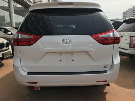 2017 款丰田塞纳3.5 四驱 LE 配置:7座,易清洁织物座椅,8向电动主驾驶带电动腰部支撑,4向副驾驶调节,4向多功能方向盘,前座椅加热,自动卤素大灯,日间行车灯,电动加热外后视 镜,车身同色外门把手,电动滑动门,18寸轮毂,间歇式雨刷,3区空调,倒车影像,隐私玻璃,行李架,7寸触屏,6扬声器,定速巡航,主副驾气囊,前排侧 气囊,主驾膝部气囊,侧气囊,自动放炫目内后视镜