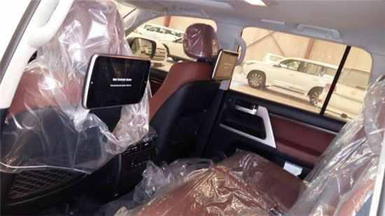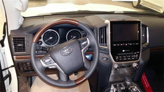 内饰方面:18款丰田兰德酷路泽5700中东整个操控区域色调为深色系,仪表盘、方向盘和排挡等位置均配以桃木装点,尽显豪华质感。不但具有DVD导航,这款车的倒车影像还可以显示在内后视镜上;中央扶手箱还装备了冷藏箱,这些都与中规版车型有所不同。酷路泽5700中东顶配延续陆地巡洋舰的精髓,增加了多地形驾驶辅助可选系统,犹如王者傲视一般霸气。兰德酷路泽5700在中控台的面板换成与内饰新色系更搭的黑色钢琴烤漆材质。