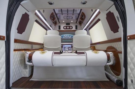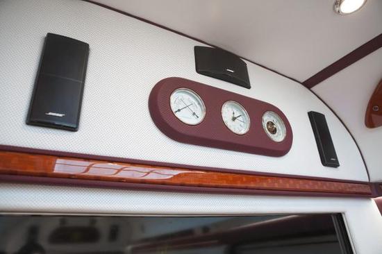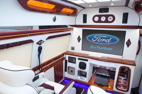 但据厂方介绍,这台福特E350的踏板和车内地板都采用了只有劳斯莱斯和豪华游艇上才会使用的高级柚木,能够起到防滑作用。