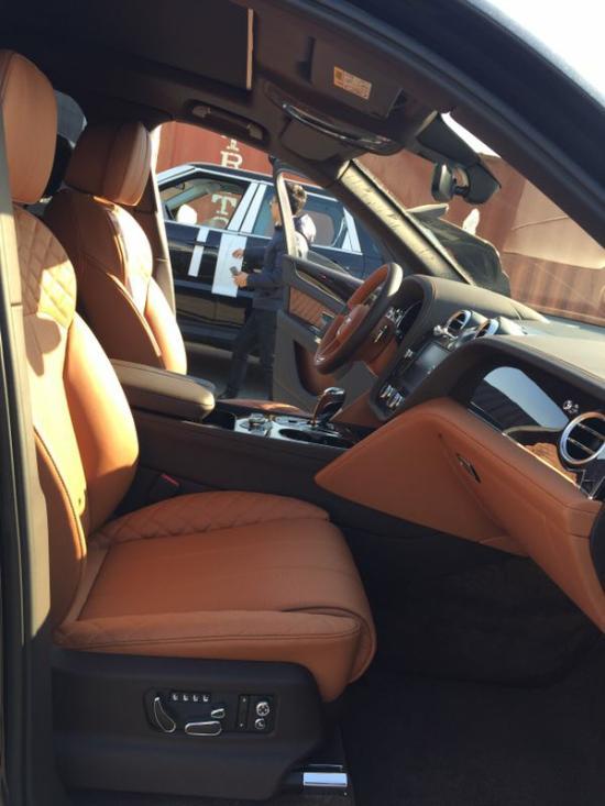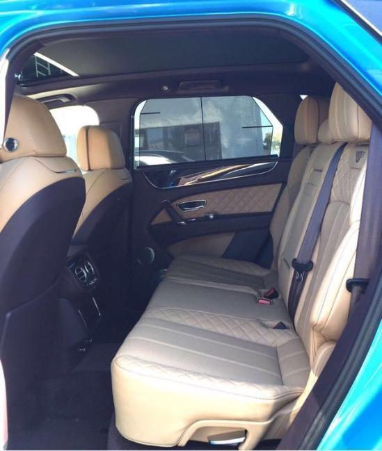 17款宾利添越四座五座版 内饰黑棕双拼 全景天窗 电吸门 智能卡 前后座椅按摩加热通风 并道 底升 环影 21存双五幅轮鼓 黑卡钳 三幅加热方向盘 全地形模式 飞翼头枕 脚感电尾门 金属漆 前后电眼 行李架 隐私玻璃 钢琴木内饰 18项电动座椅 换挡拨片 镀铬踏板 皮顶 缝制座椅