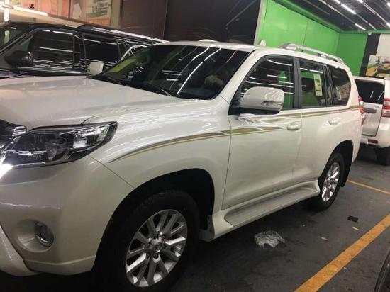 霸道2700外挂丐版配置:虽然是丐版,不过你依然可以有天窗可以供您选择,没办法,作为自家接车的一手经销商,我就是这么任性,后挂,2气囊,R17铁轮毂,丝绒座椅(中东版只有顶配限量版采用真皮座椅,其余一律丝绒座椅,如果你选了一台配置不算很高的霸道2700而配备了真皮座椅,相信我那一定是商家自己改装的),主驾驶电动腰部支撑,卤素大灯,后雾灯,黑色外后视镜,中网,门把手(好的,个人感觉观感还不错,不过大部分人都选择进行升级,升级费用的话也就几百块),车身稳定+牵引力控制+胎压监测(这些都已经是标配,安全性得到进一步升级)