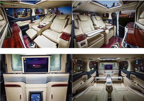 面对本已出类拔萃的埃尔法,全隔屏设计,一键式雾化隔屏,全车豪华紫檀木装饰,环绕车顶的LED灯条可以提供16种不同颜色。使之更符合“天王”御用座驾和商务精英的尊享定位
