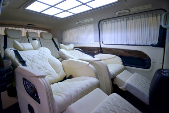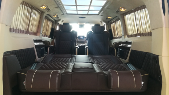 整车座椅采用进口Nappa真皮包裹,电动调节总能让您找到舒适的坐姿,大尺寸触摸屏,配有倒影、后雷达;更有大容量冰箱,安全性,便利性都有保障; 2+2+3座椅排列,也是当前商务车最为流行的设计,二排独立航空座椅,打孔真皮处理更透气,座椅通风、按摩给予您更舒适的乘坐感受,更有360度旋转功能; 无论是照顾孩子、陪家人聊天,亦或是商务洽谈,都能让您随心所欲;此外第三排座椅展开,即可形成一张宽大舒适的沙发床!