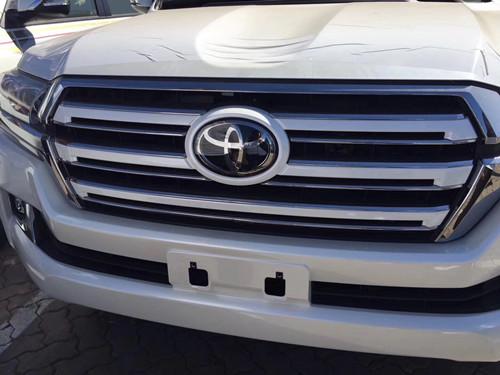 今天文章展现的是今年最新引进国内的17款中东版丰田酷路泽配置车型,大灯清洗限量版,通过外观就可以明显看出,车身同色的中网,熏黑大灯,这是比较显著的特征配置。